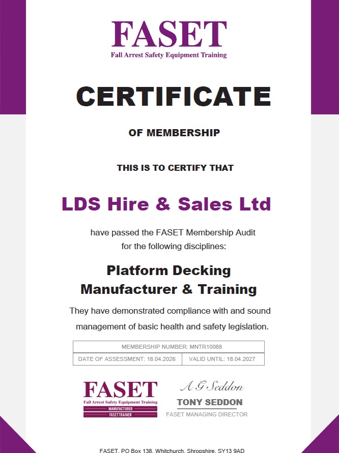Moreover, as members of FASET, we offer comprehensive training programs, including blue-skilled CSCS card training. Our skilled team is dedicated to delivering personalised assistance and expert guidance at every stage of your project. With G-DECK, rest assured, your success and peace of mind are our priority.